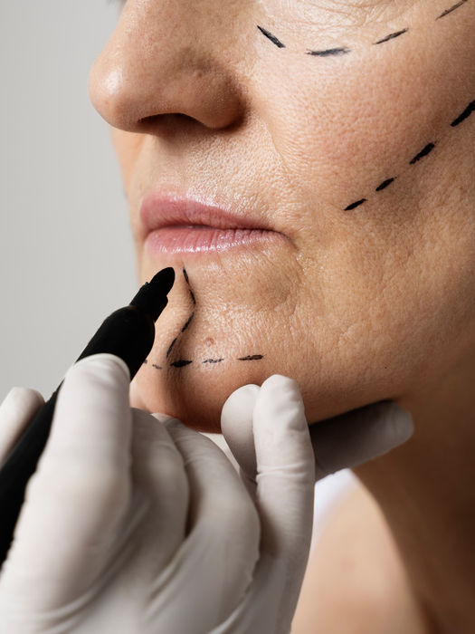 Fine lines, deep creases, and skin laxity are common signs of aging. Wrinkles may appear around the eyes, mouth, forehead, and neck.